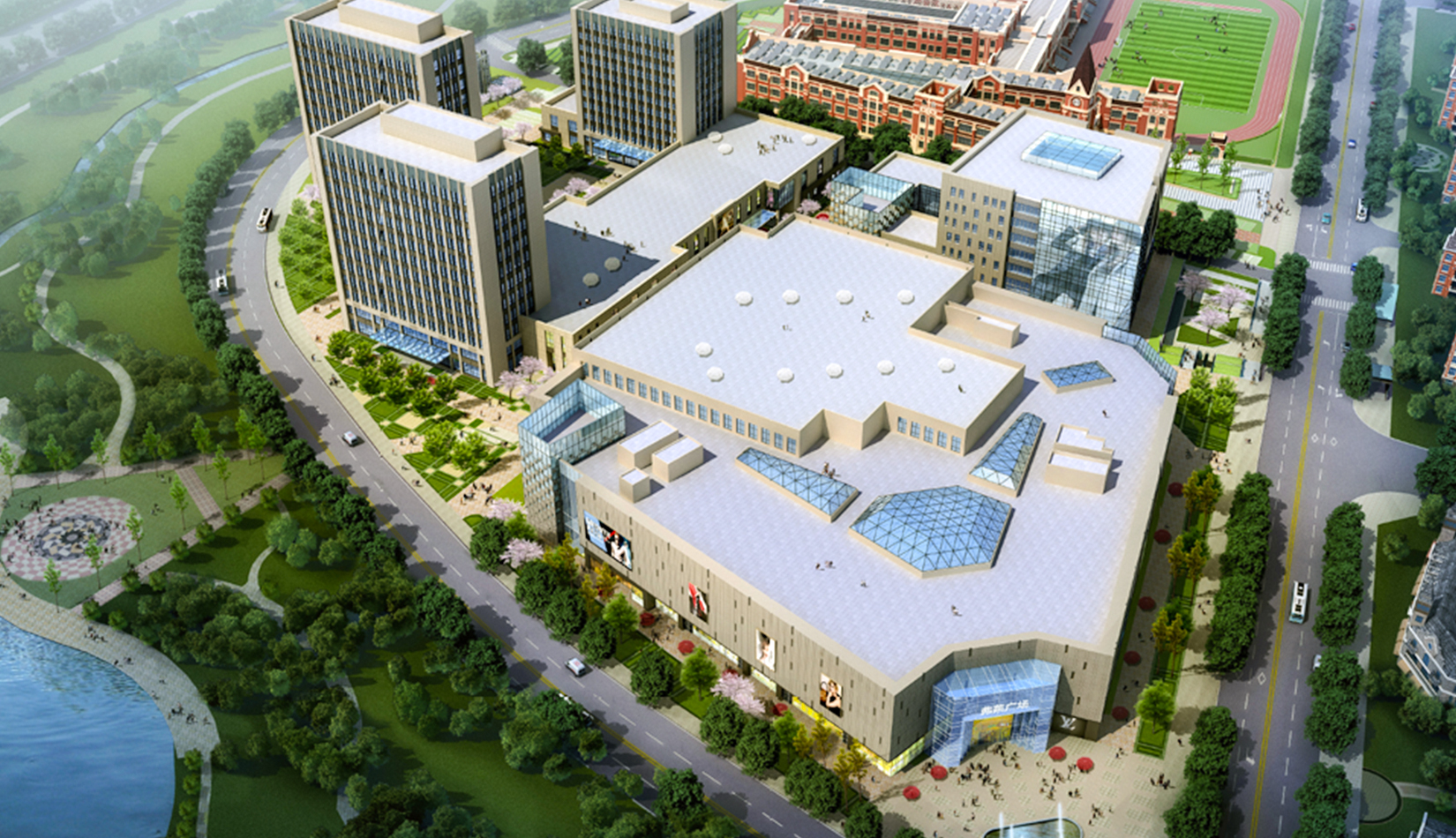 本項目包含商業(yè)、酒店、公寓、辦公、電影院等功能,作為一個商業(yè)綜合體滿足中德生態(tài)園周邊居民的生活、