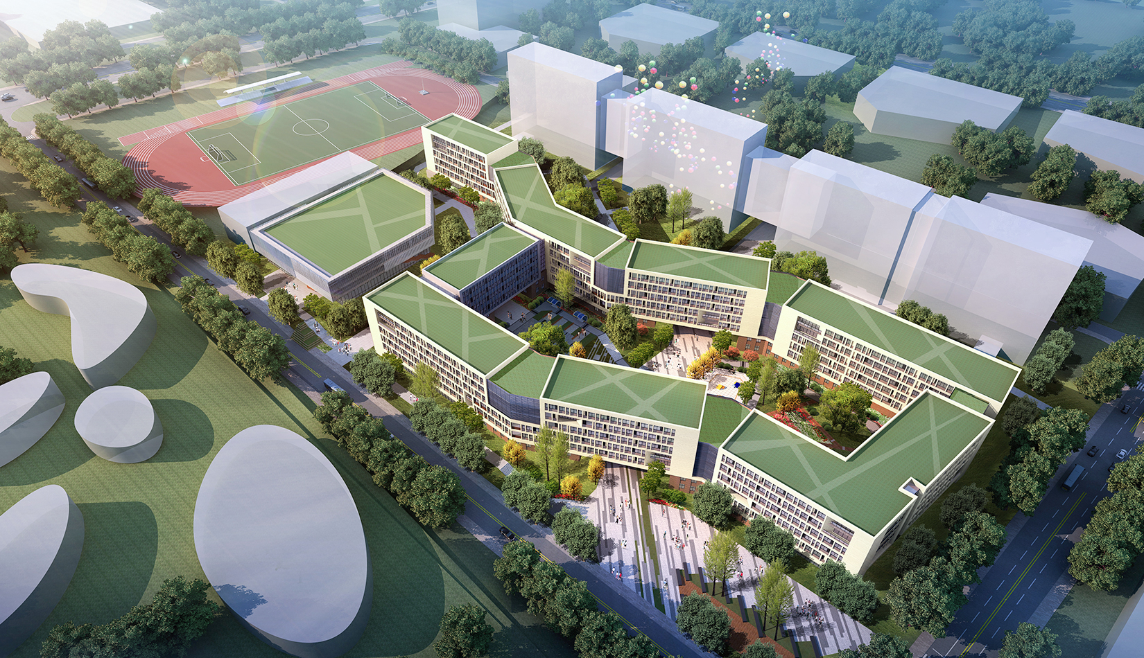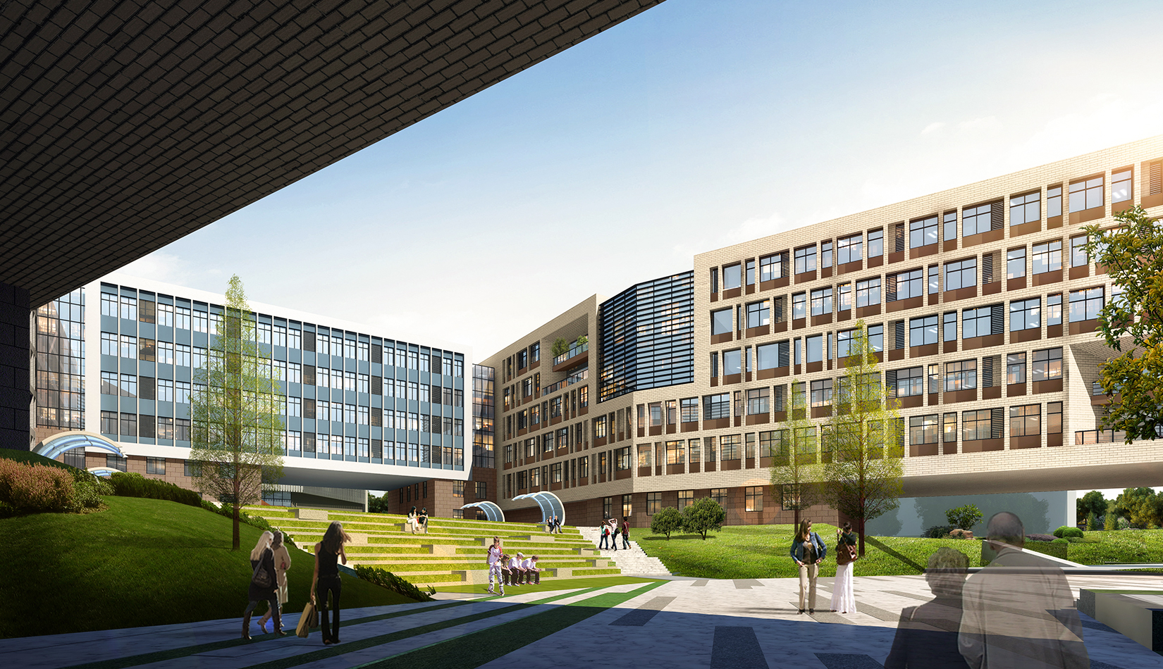 東區(qū)生活區(qū)庭院空間配合建筑設(shè)計的現(xiàn)代主義風(fēng)格,提取未來主義畫派的代表元素——線條 作為構(gòu)思的主脈絡(luò),以“理性與未來”為設(shè)計理念,在建筑圍合的景觀中庭采用現(xiàn)代景觀設(shè)計,意在未來,情致校園 。