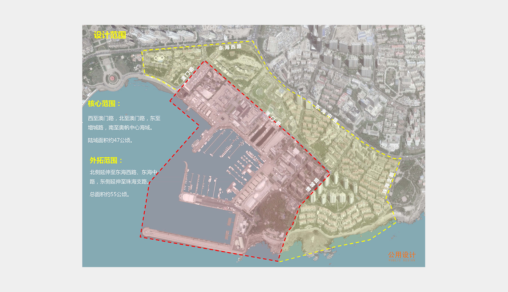設(shè)計(jì)緊緊圍繞“世界水準(zhǔn)、中國(guó)氣派、山東風(fēng)格、青島特色”的總體原則,對(duì)整個(gè)奧帆中心環(huán)境進(jìn)行整體提升。先期完成本次奧帆中心提升工程整體概念規(guī)劃,規(guī)劃區(qū)域47公頃,外拓研究區(qū)域55公頃。